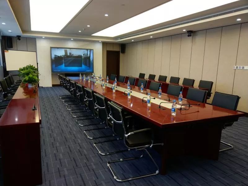 410董事局會議室長11.77m、寬6.8m、高2.8m,面積約80㎡,可容納坐席31個,主要用于董事局內部會議、工作匯報、日常會議等。