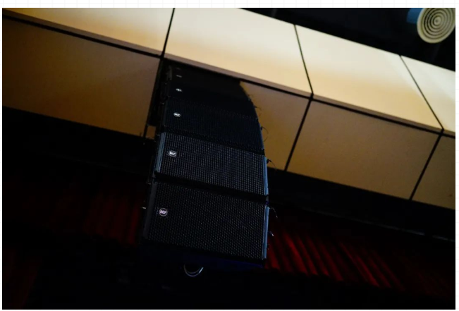 整個禮堂擴聲系統采用意大利RCF原裝進口音響,左右主擴聲為具有遠程網絡控制技術的HDL系列有源線陣音箱各6只,中間采用中置有源線陣音箱4只,超低音采用SUB雙18寸有源音箱2只 ,臺唇使用有源音箱,整個禮堂補聲采用了16只輔助環繞音箱,保證了所有座位都能聽到準確而清晰的聲音。