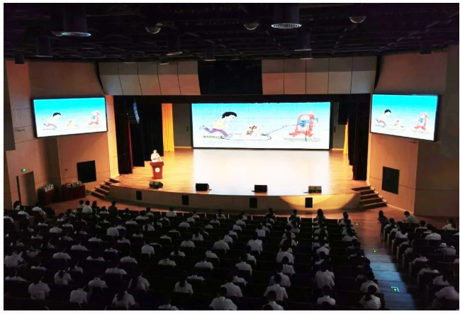 校區大禮堂是學校舉行會議、學術報告、培訓活動以及慶典演出等的綜合用途廳堂。為滿足使用要求,在禮堂配置了包括如下系統:擴聲系統、燈光系統、視頻系統、錄直播系統以及會議中控系統等。項目自投入使用以來,承接了多場活動,包括:家長會、高考動員大會、教師節演出等。