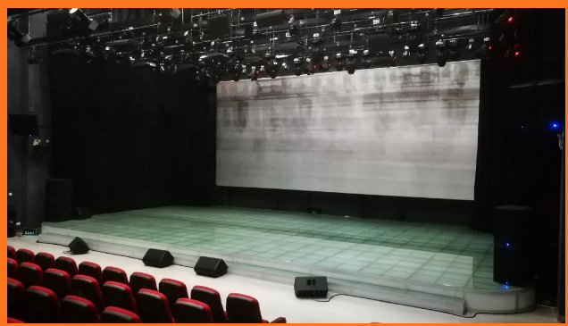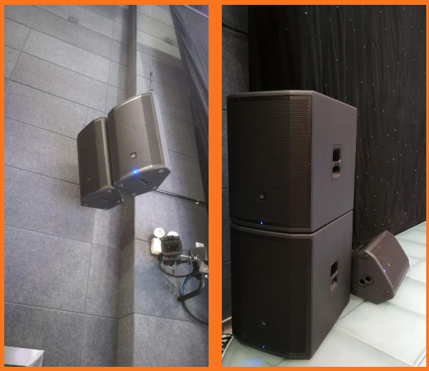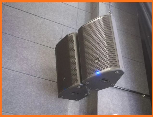 川師大綜合實(shí)驗(yàn)樓小劇場(chǎng)舞臺(tái)上的主擴(kuò)聲系統(tǒng)由美國(guó)JBL PRX800系列中的PRX815W有源15寸兩分頻以及PRX818XLFW有源18寸超低頻擔(dān)任,PRX 812W有源12寸兩分頻作為舞臺(tái)監(jiān)聽(tīng)以及前補(bǔ)聲。