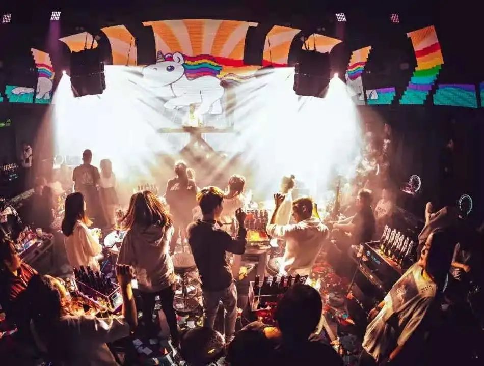 夜色酒吧位于吉林省梅河口市,是 2020 年新開酒吧,內部空間近 500 平方米,層高 7 米,設 40 個卡座,是一處深受歡迎的電音派對酒吧。