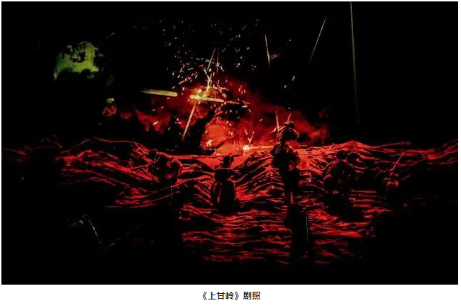 在很多的優(yōu)秀劇目中,視覺與聽覺的相互配合成為一部劇最為精彩的一筆,如剛推出不久的《上甘嶺》。劇中有真實的爆破、子彈擊中地面等特技效果,視覺的呈現(xiàn)契合聲音的還原,使這一環(huán)節(jié)非常真實且震撼。